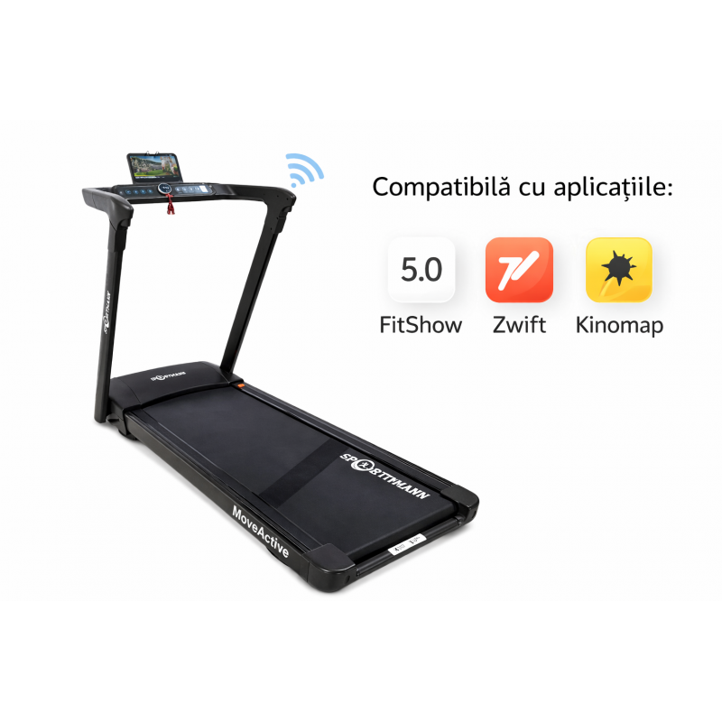 MoveActive интегрира Bluetooth високоговорители и поддръжка за приложенията Fitshow, Zwift и Kinomap, превръщайки обикновената тренировка в интерактивно и мотивиращо изживяване.