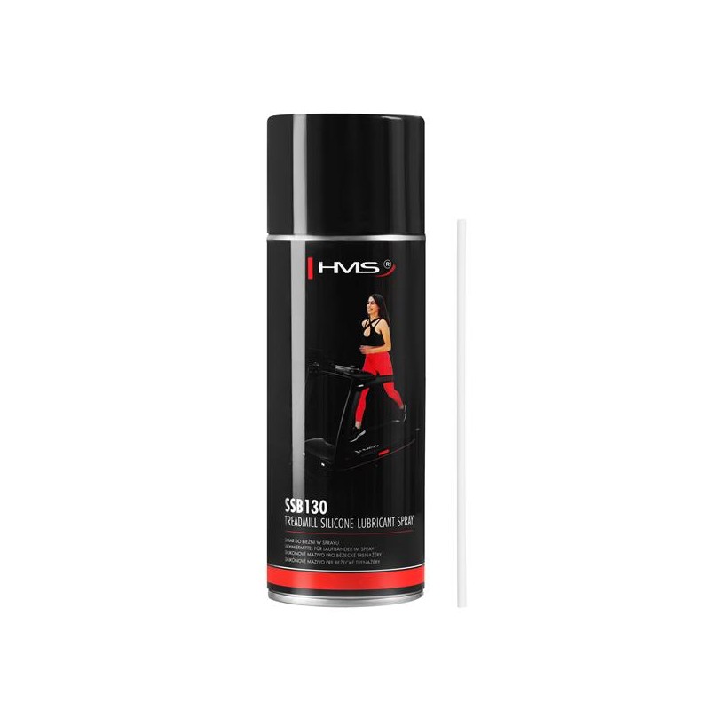 Спрей за смазване на ленти за бягащи пътеки HMS SSB 450ml - силиконова смазка за бягащата пътека и по-точно за лентата на бягащата пътека. Той е под формата на спрей, така че нанасянето под лентата е много лесно. Към спрея е прикрепена тънка тръба, която гарантира, че по време на нанасянето смазката ще се прилага, където искате.