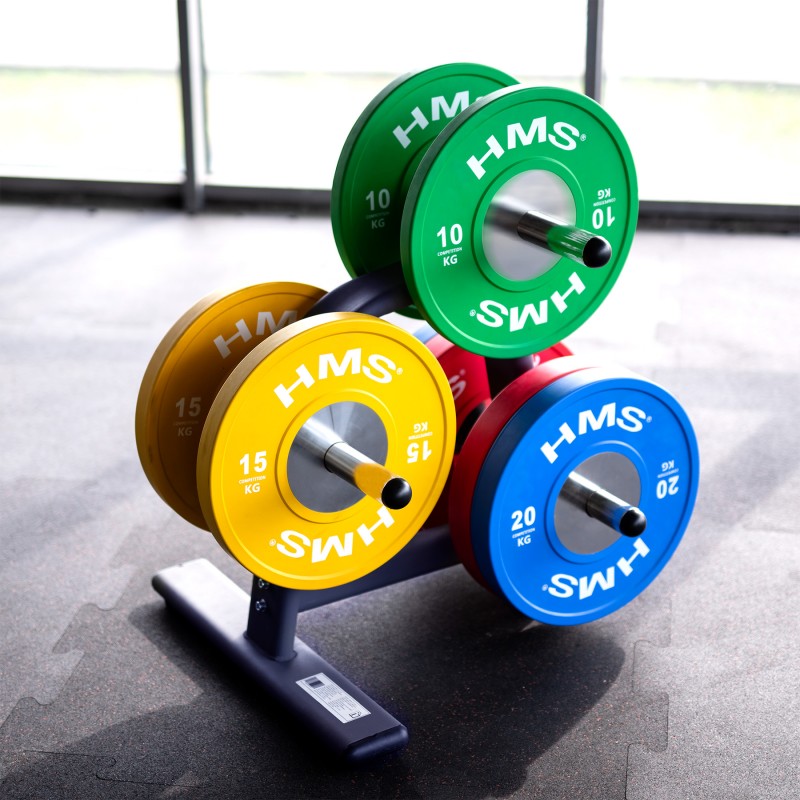 HMS STR27 стойка за олимпийски дискове, изработена от хромирана стомана, максимално натоварване: 500 кг, подходяща за домашна и професионална употреба.