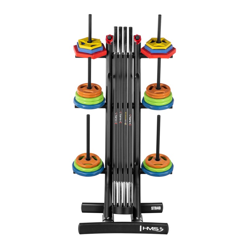 STR40 е стойка за дискове и лостове, подходяща за домашна и професионална употреба, с тегло 26,5 кг, която помага за поддържане на тренировъчното пространство чисто и организирано.