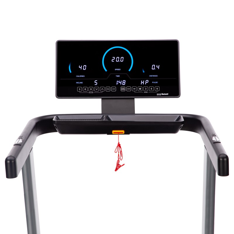 A futópad LED kijelzős számítógéppel van felszerelve, amely 36 előre beállított edzésprogramot, 3 felhasználói programot és 1 manuális programot kínál. A beépített testzsír-mérés (testzsírszázalék), az idő, távolság, sebesség, kalória és pulzus mérése segít a fejlődés nyomon követésében és az egészség paramétereinek ellenőrzésében. A praktikus fogantyú gombokkal gyorsan szabályozható a sebesség és a dőlésszög megszakítás nélkül.